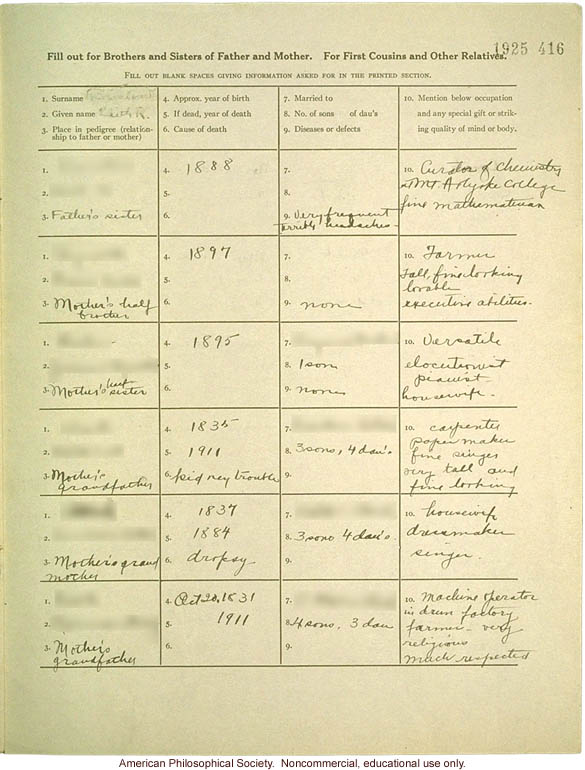 "Large family" winner, Fitter Families Contest, Eastern States Exposition, Springfield, MA (1925): Abridged record of family traits (6)