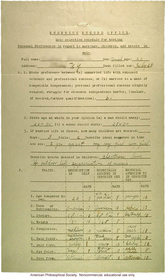 A pedigree was part of a eugenical case study done by Margaret Kesler, a student in the 1920 summer course at the Eugenics Recod Office. The subject of the study was a fellow student in the course.